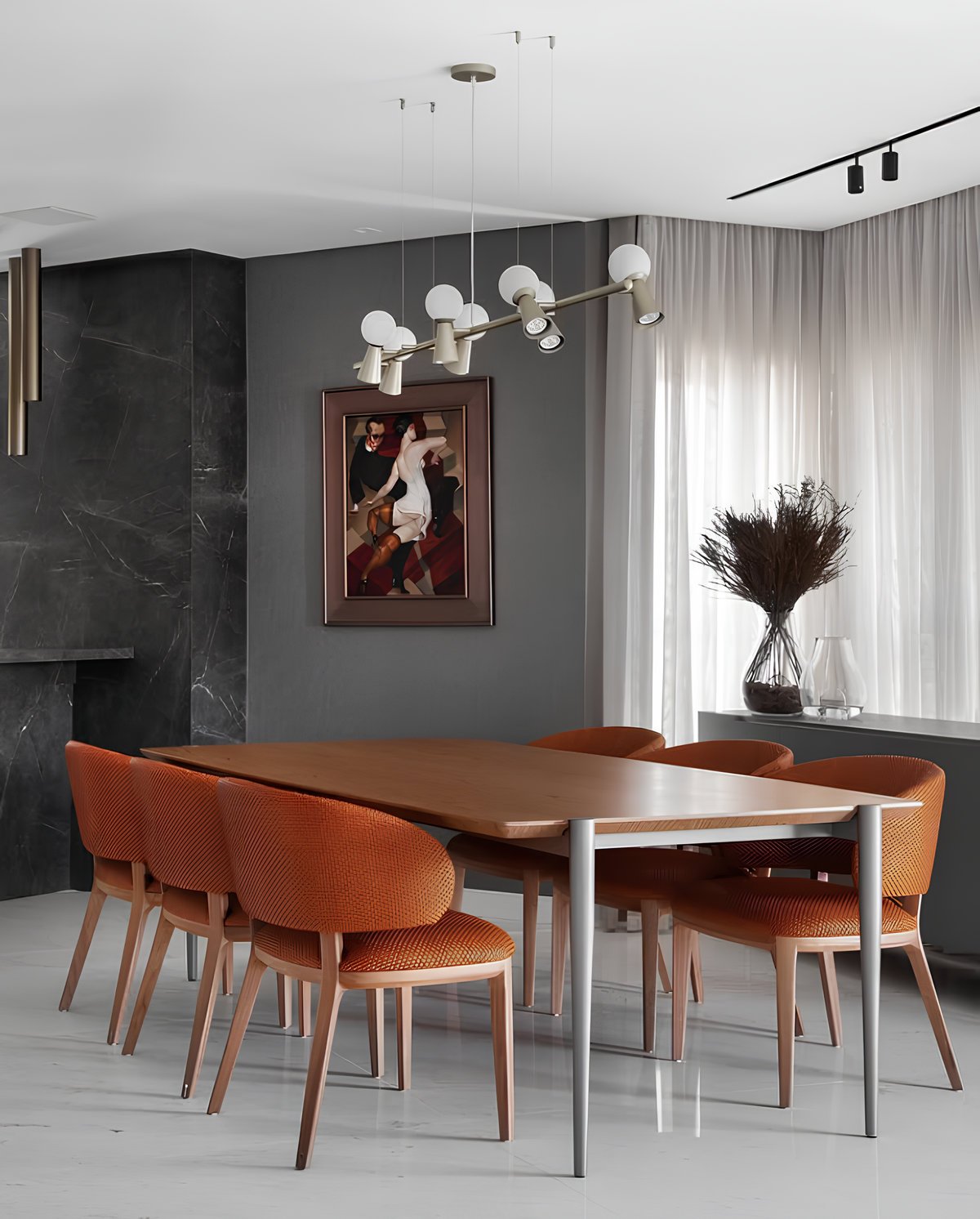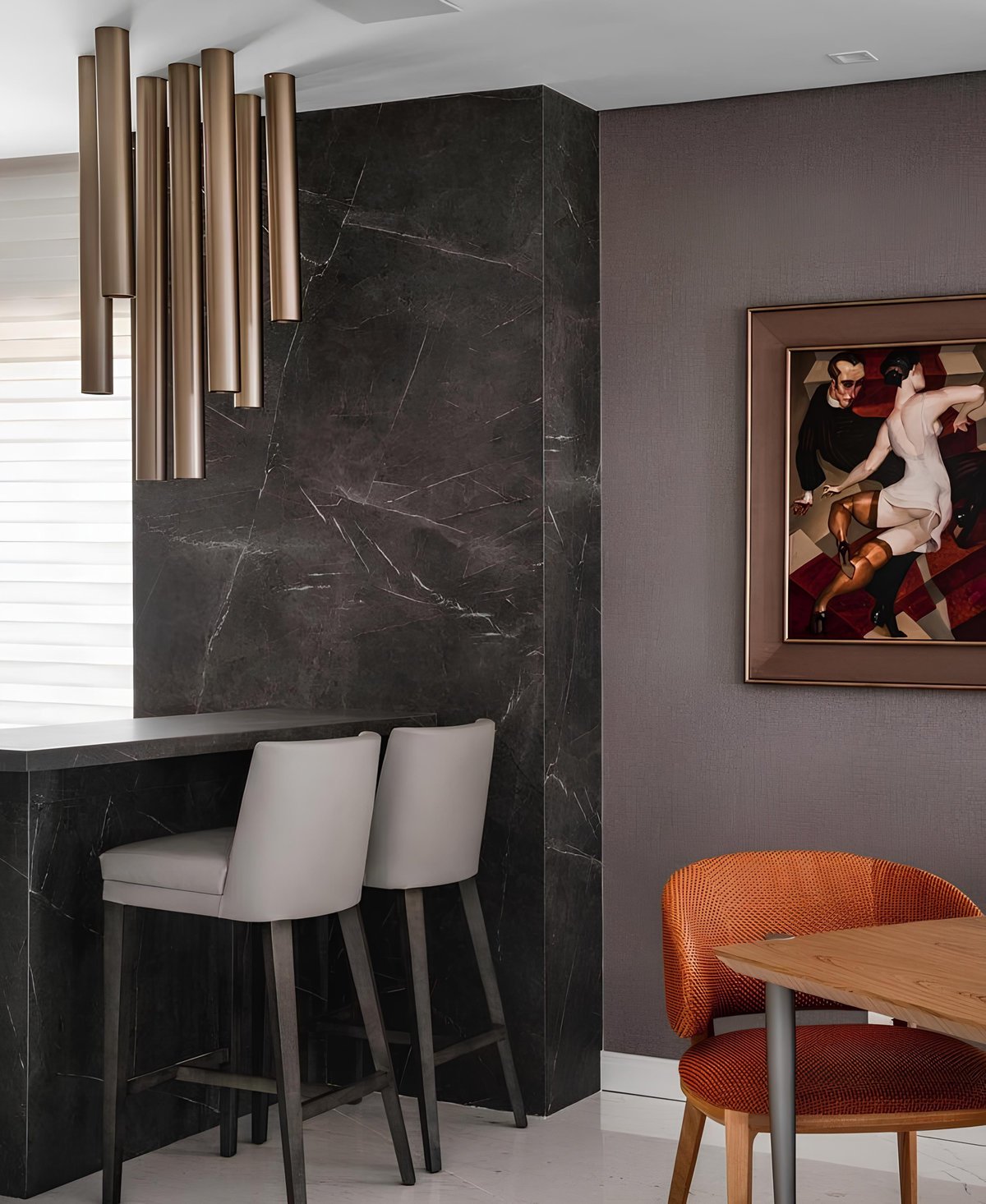 Apartamento com projeto extremamente refinado, onde obras de arte, iluminação de design assinado e mobiliário de alto padrão compõem um cenário de elegância absoluta. A estética sóbria e chique traduz sofisticação em cada detalhe.